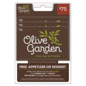 Olive Garden 75 Value Gift Cards 3 X 25 And Free Appetizer Or